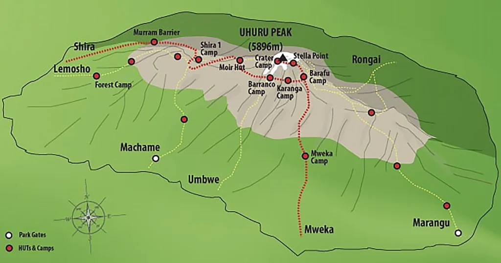 The Shira Route, with its rapid ascent to such a high altitude, requires additional acclimatisation, making it ideal for hikers already adapted to the heights of Mt. Meru or Mt. Kenya. From the plateau, the challenge intensifies as you ascend toward Uhuru Peak via the dramatic Western Breach or the traditional Barafu Hut route, offering a thrilling, high-altitude adventure for seasoned climbers ready to conquer Kilimanjaro.